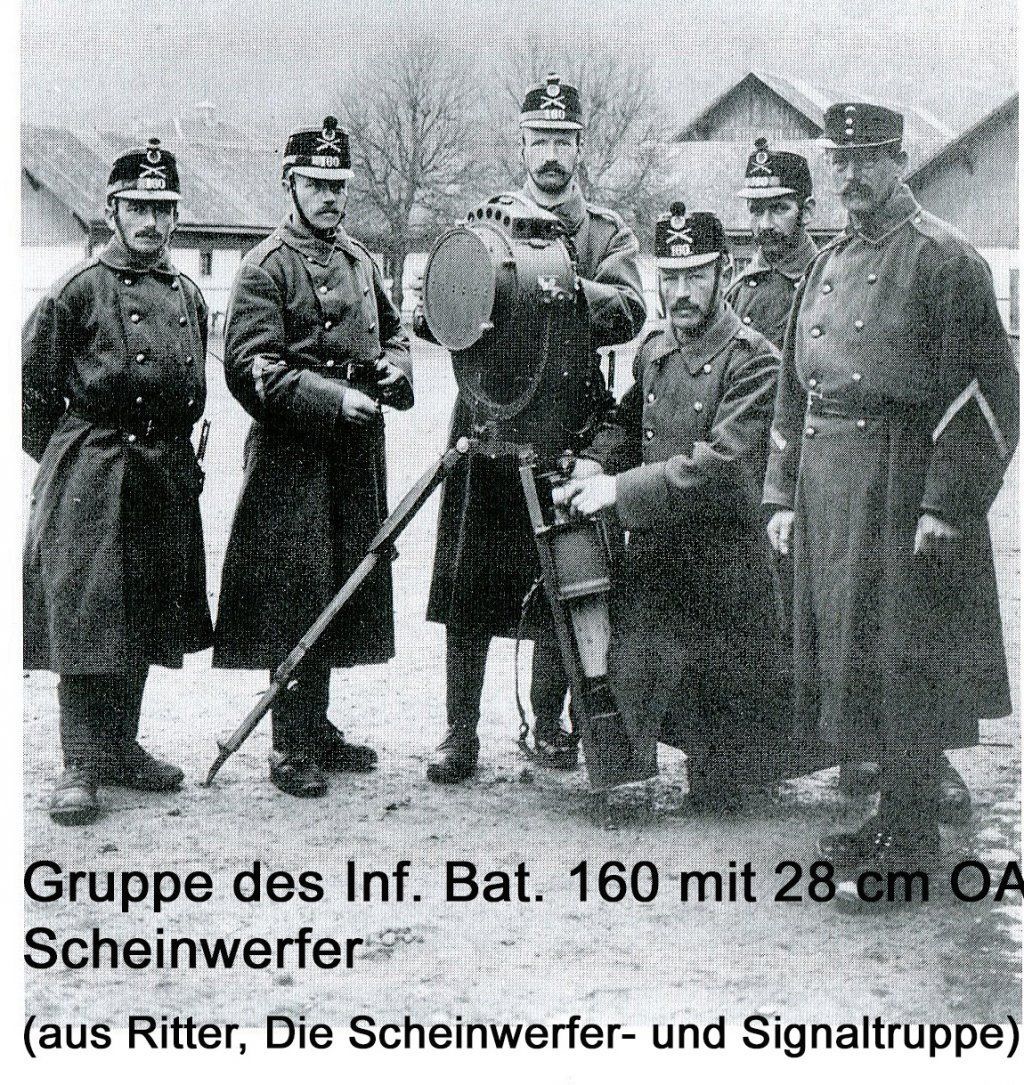 (Angaben aus dem Heft Fernmeldematerial der Schweizer Armee seit 1875, Folge 8, ab Seite 20 und "Die Scheinwerfer- und Signaltruppe" von R. Ritter, Band 3, Seite 49 - 51)